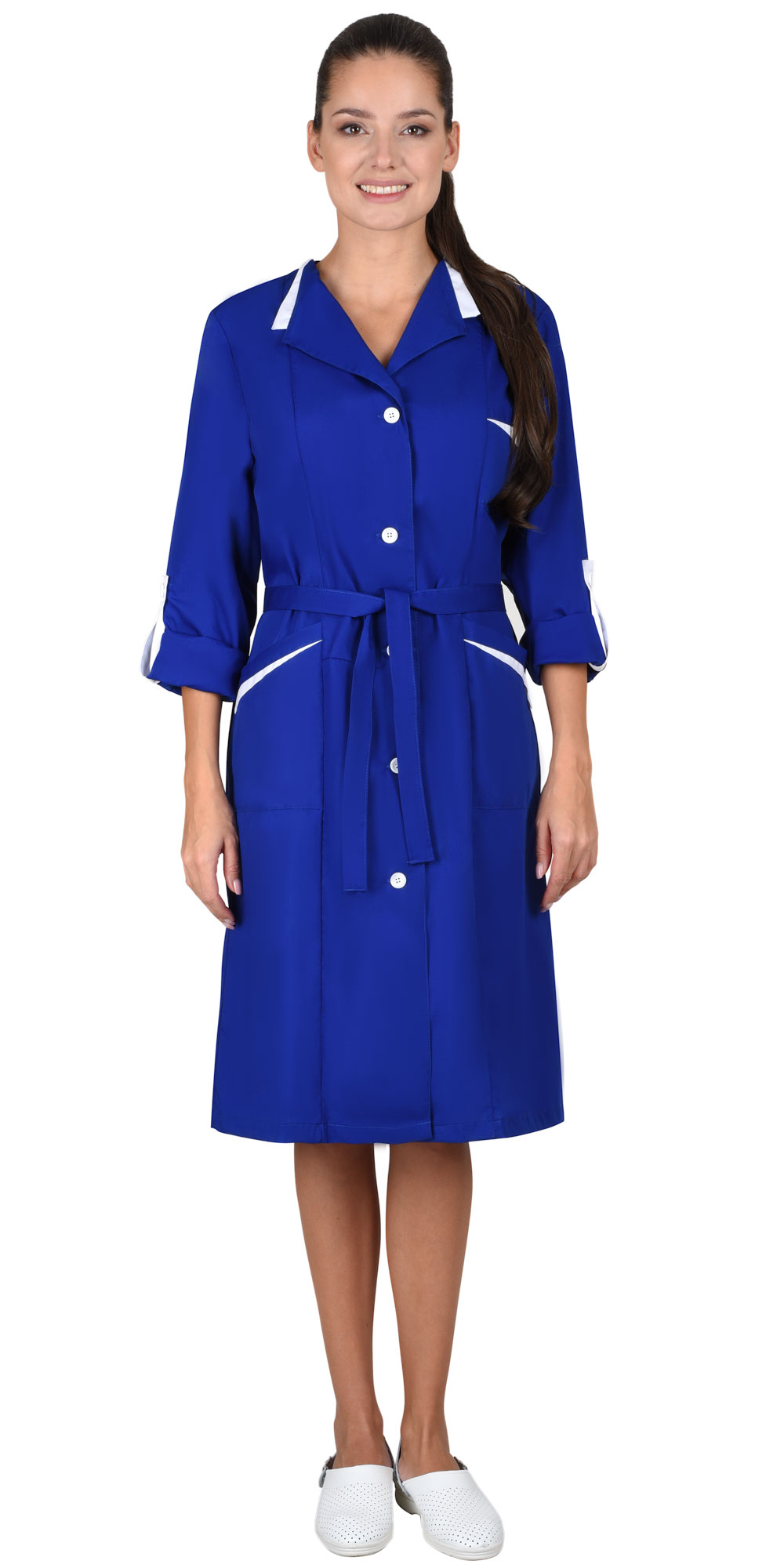 - 00927 Халат "Комфорт" васильковый с белым (ЧЗ)