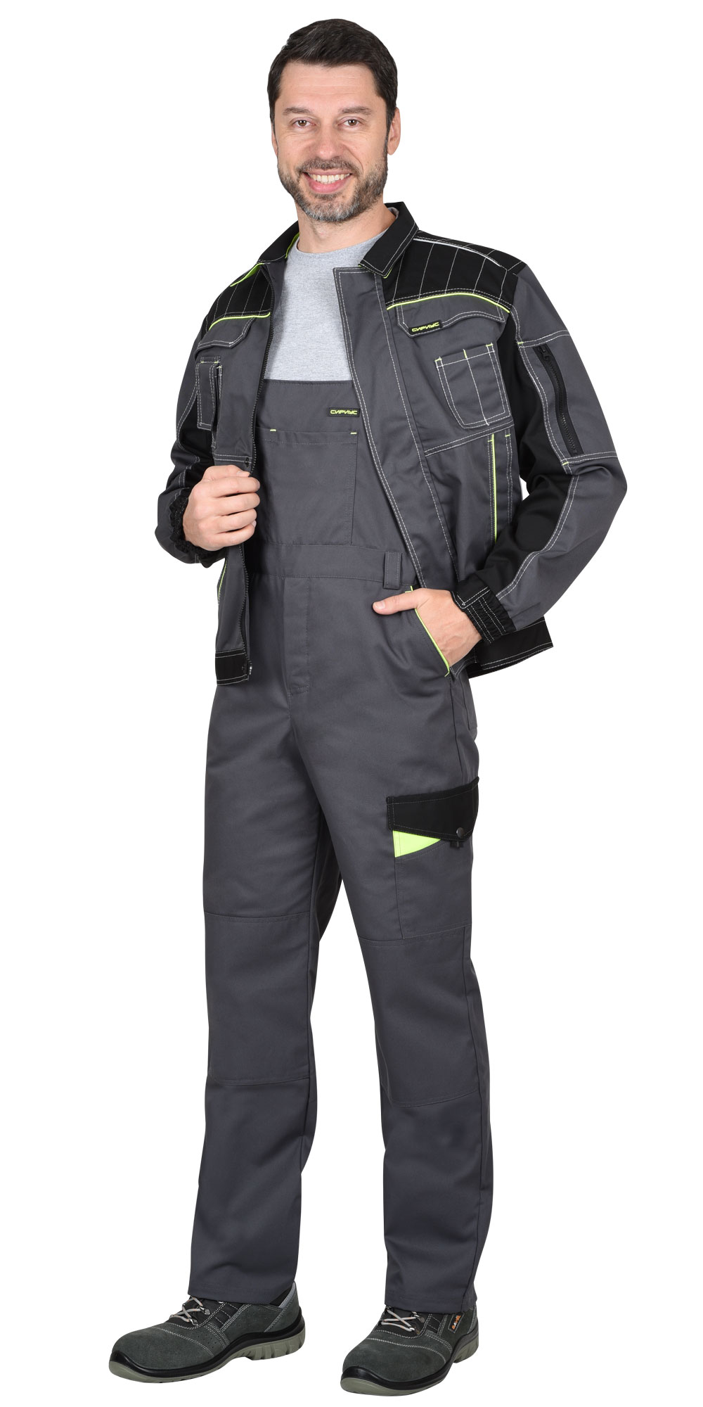 - 00853 Полукомбинезон "ХОВАРД" : темно-серый с черной и лимонной отд. (ЧЗ)