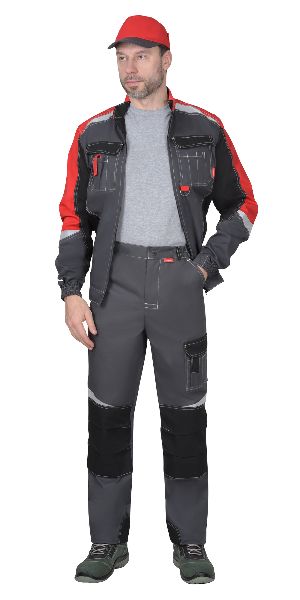 - 00871 Куртка "Фаворит-Мега": серая с красн., черн., СОП Тк. Rodos (ЧЗ)