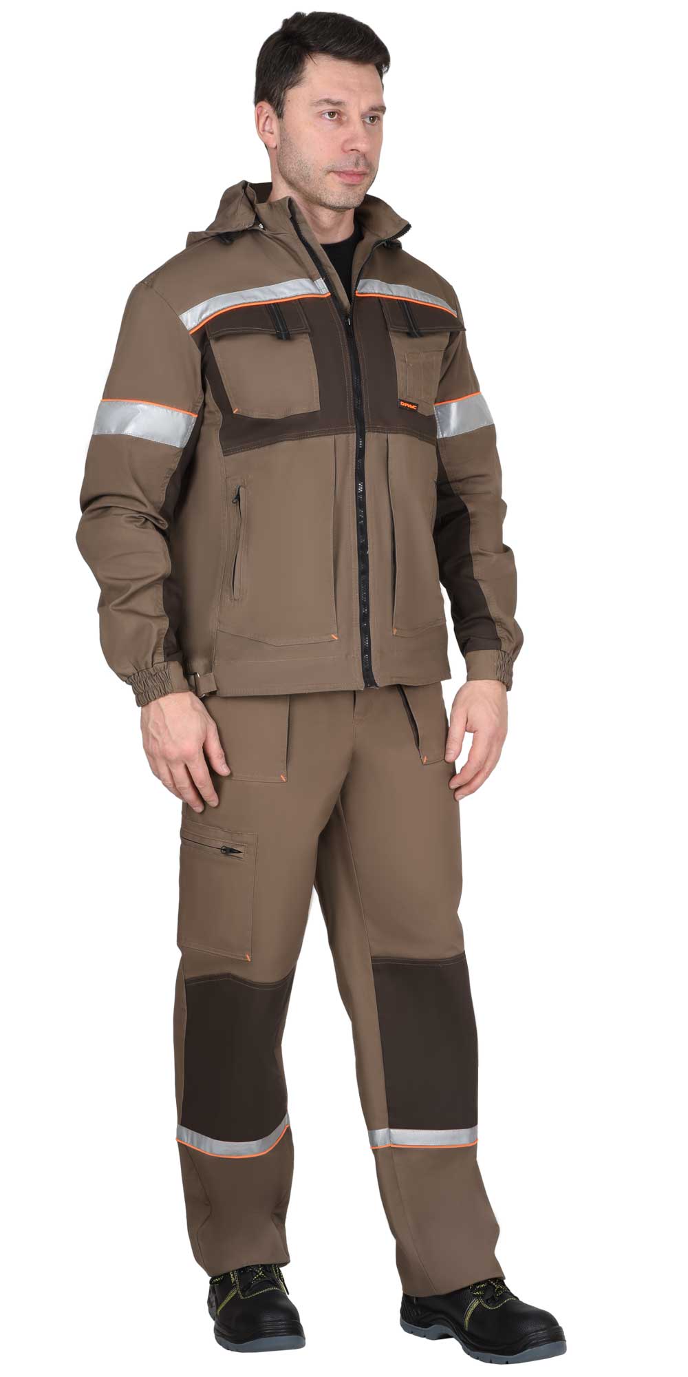 - 04033 Костюм "РОДОС" мужской: куртка, брюки (св.-коричневый с т.-коричневым) тк.Родос (ЧЗ)