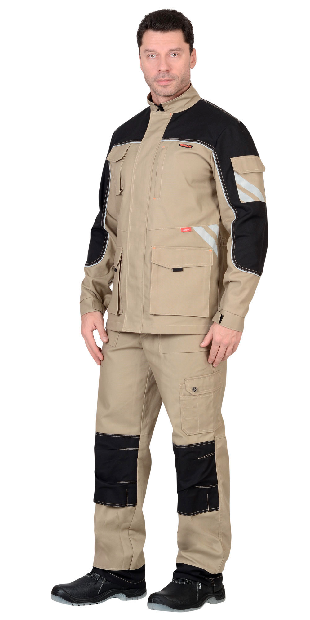 04361 Куртка "ВЕСТ-ВОРК" удлиненная, бежевая с черным (ЧЗ)