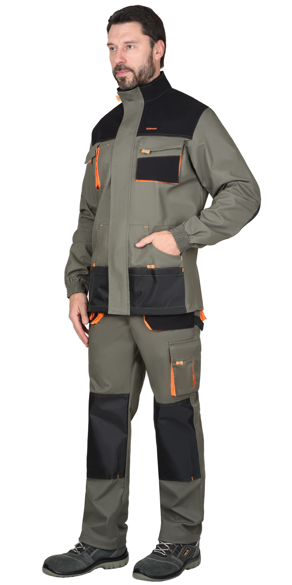 - 112450 Куртка "МАНХЕТТЕН" удлиненная, оливковая с оранжевым и черным (ЧЗ)