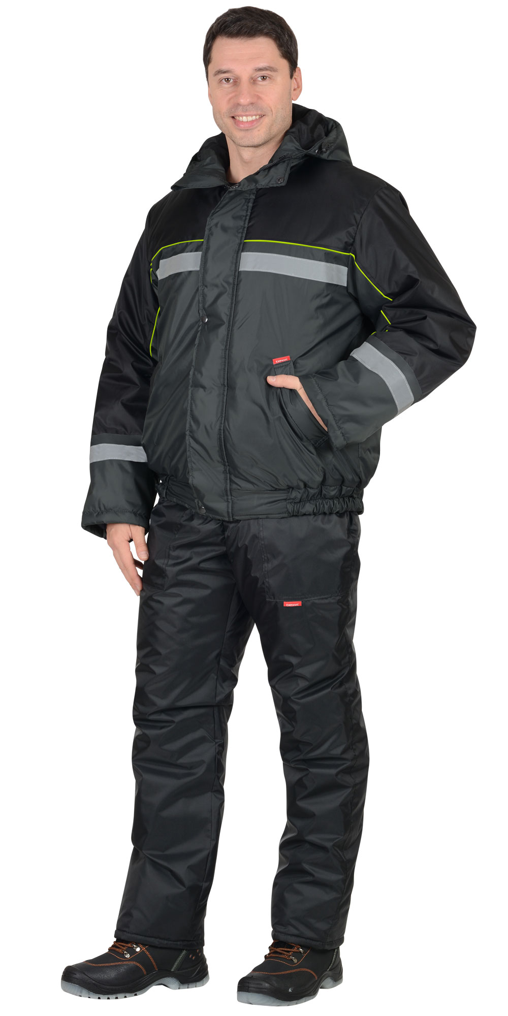 - 114727 Куртка "ГАСТАРБАЙТЕР-3" кор.,т-серая с чёрным и лимон кантом СОП 50 мм (ЧЗ) тк. Оксфорд