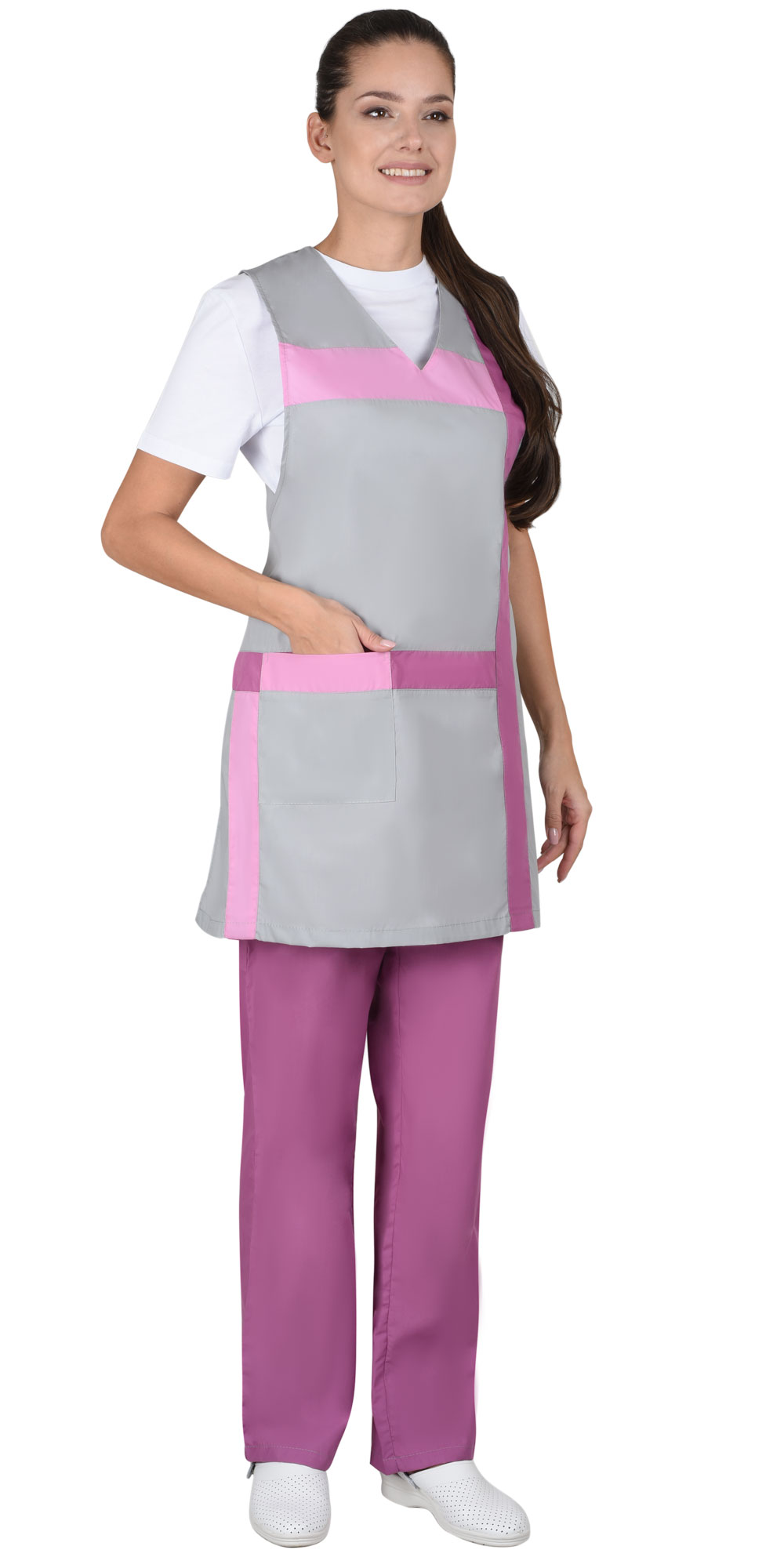 - 04041 Комплект "ГАЛАТЕЯ" женский: фартук, брюки серый с розовым (ЧЗ)