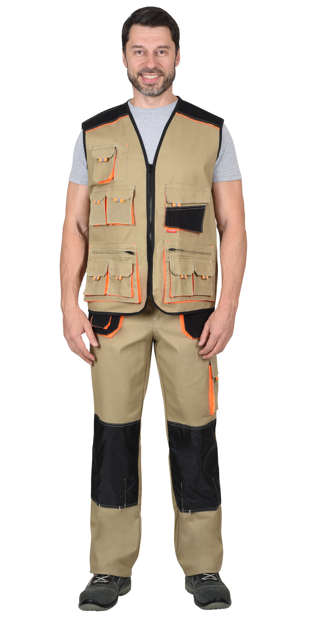 - 104014 Жилет "МАНХЕТТЕН" песочный с оранжевым и черным (ЧЗ)