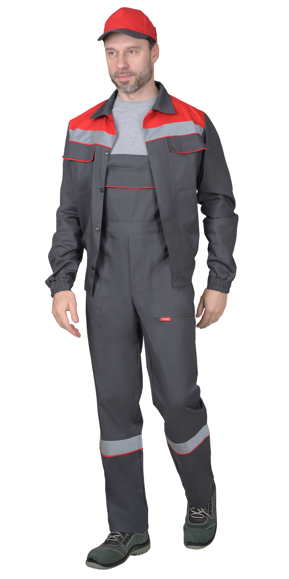 - 109260 Костюм "СИРИУС-МАСТЕР" летний: куртка кор., п/комб. темно-серый с красным (ЧЗ)