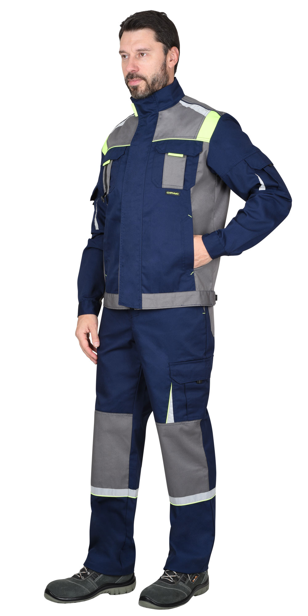- 160631 Куртка "СТАН" синяя со ср-серым и лимонной отделкой тк. Rodos (ЧЗ)